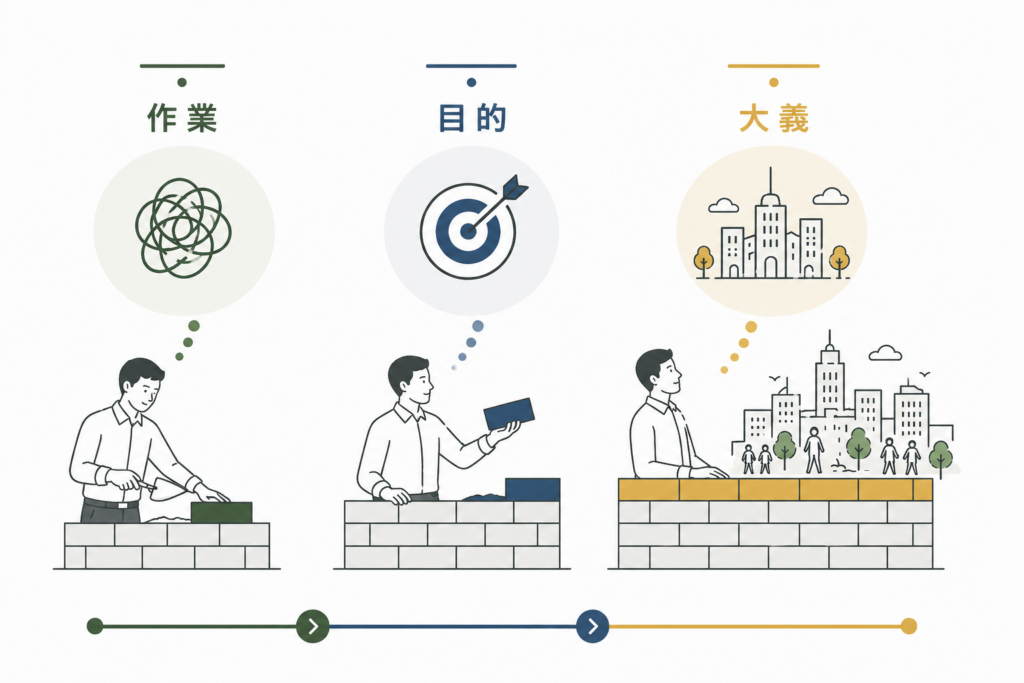 ある旅人が、レンガを積んでいる3人に同じ質問をしました。